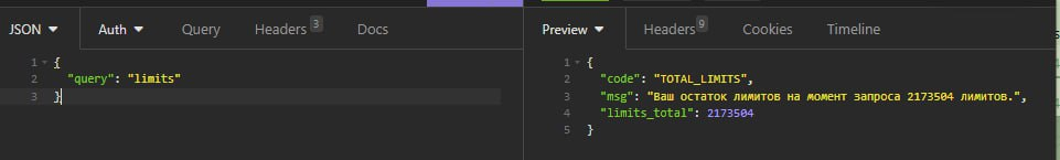 Получение информации об имеющихся и затраченных лимитах аккаунта.