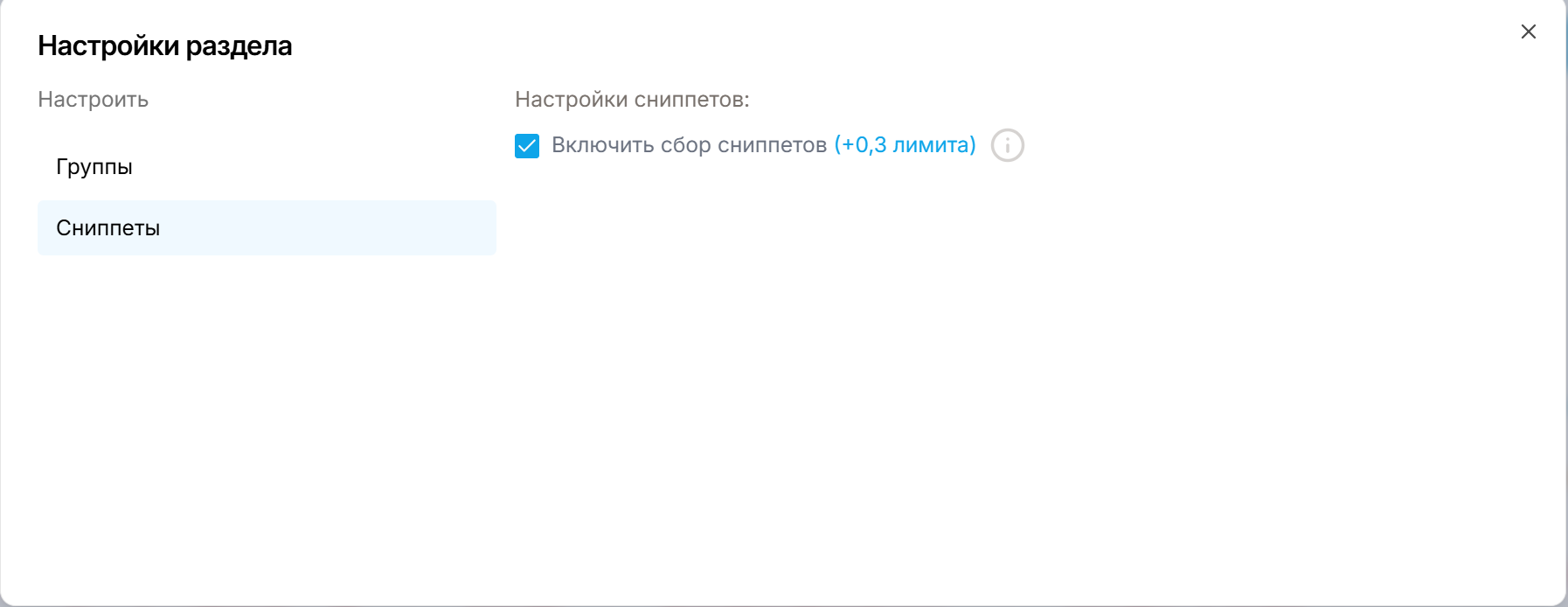 - Поставить чекбокс «Включить сбор сниппетов».